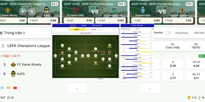 Bước 4: Xem chi tiết: Click vào trận đấu để xem highlight, tỷ lệ kèo bóng đá, và phân tích.